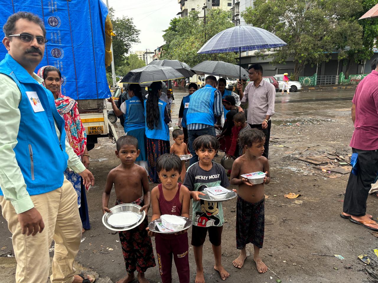 Feeding program conducted on 23 June 2024 for APMC slum dwellers and children Puneet corner -Vashi.